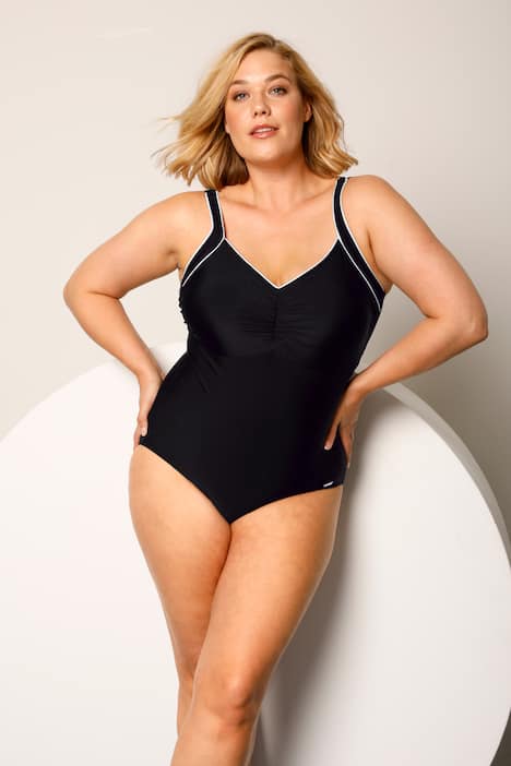Badeanzug mit Softschalen und Paspeln. Verstellbare Träger. Unterbrustband, Vorderfutter.