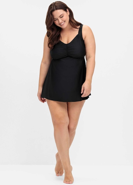 Tankini-Oberteil in längerer Kleid-Form. Das leicht geraffte Brustteil setzt feminine Akzente und sorgt für einen verspielten Look. Verstellbare Träger, Softcups und ein Unterbrustgummi bieten individuellen Komfort und sicheren Halt. Schmeichelnd und schwungvoll fällt die leicht ausgestellte Schnittform. Dank des Mix & Match-Charakters lässt sich dieses Oberteil wunderbar mit anderen Teilen aus der sheego Badekollektion kombinieren.