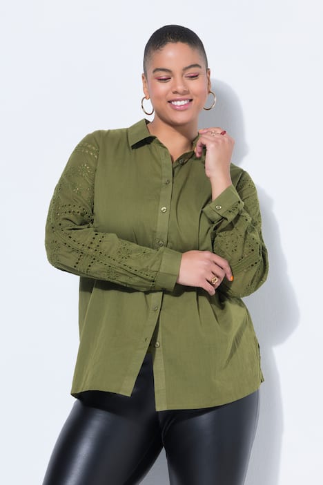Hemdbluse, Straight Shape, Stickerei, Langarm