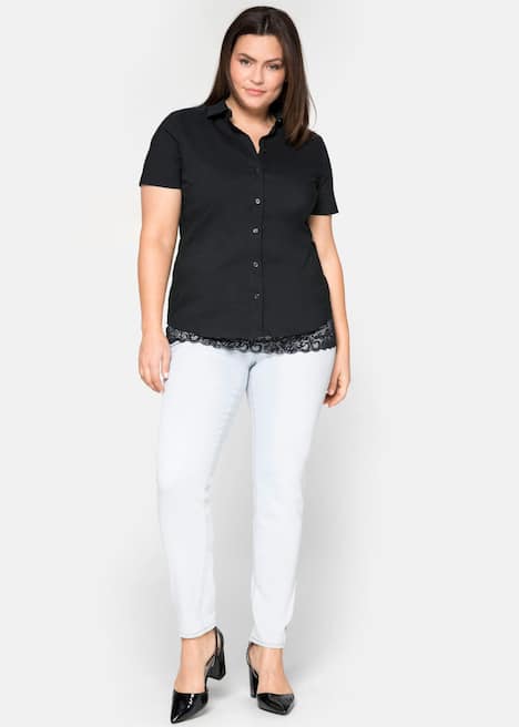 Unverzichtbarer Kombipartner: Die kurzärmlige Bluse in zeitlosem Design passt zu jedem Look und jedem Stil. Der Klassiker überzeugt in leicht taillierter Passform, mit schmaler Knopfleiste und Blusenkragen.