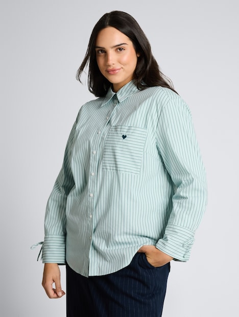 Oversize Hemdbluse mit aufgesetzter Brusttasche und kleiner Herz-Stickerei. Aus einem gewebtem Popeline-Stoff mit Stretch-Anteil.