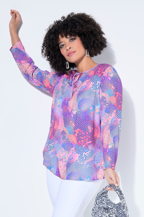 Tunika, A-Linie, bunter Druck, Langarm