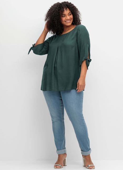 Tunika in strukturierter Viskosequalität. Der bequeme, luftig fallende Style begeistert mit raffinierten Details: So überraschen die 3/4-langen Ärmel mit langem Schlitz und Bindeband. Vorn ist die Tunika mit einem weit gefassten Rundhalsausschnitt gearbeitet, hinten lässt der V-Ausschnitt den Blick auf den Nacken frei. Die Kellerfalte gibt dem Fit entspannte Weite, auch die seitlichen Schlitze sorgen für Bewegungsfreiheit.