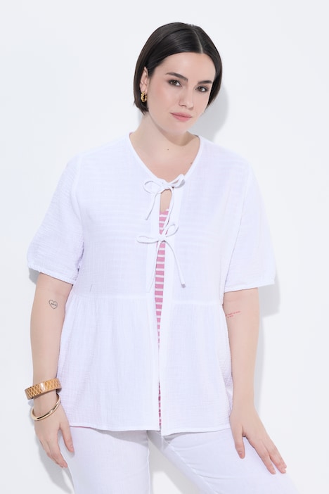 Musselin-Bluse, Schleifenverschluss, V-Ausschnitt, Halbarm