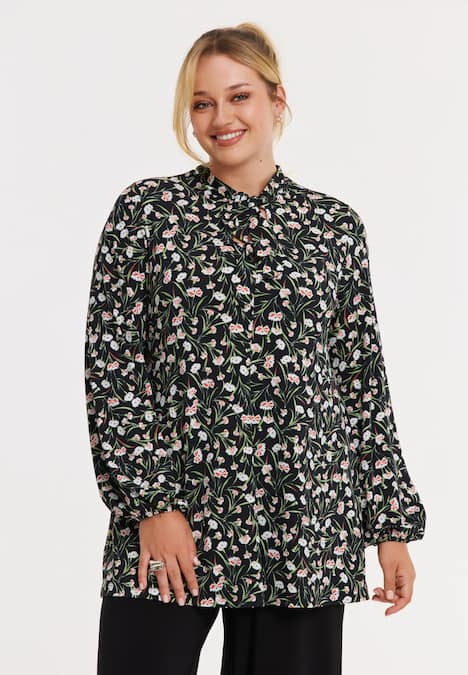 Diese stilvolle Tunika aus dem bequemen Dolce-Material ist mit einem charmanten Blumenmuster auf schwarzem Hintergrund bedruckt. Das Bindeband am Halsausschnitt verleiht dem Design eine feminine Note. Dank der bekannten Flare-Passform von YOEK fällt die Tunika fließend und schmeichelhaft.
