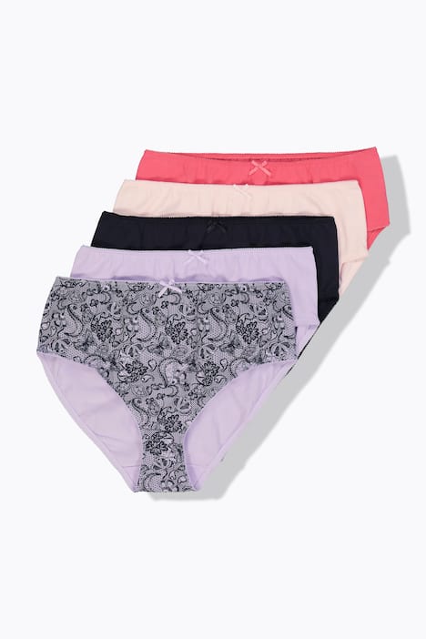 Midislips im 5er-Pack mit bester Passform. 1 x mit feinem Muster, 4 x einfarbig. Die bewährte Passform zeichnet sich durch einen hohen Tragekomfort aus. Die Slipform hat eine niedrige Leibhöhe, geringen Beinausschnitt und bedeckt den Po komplett. Bequem und formstabil durch Elasthananteil.