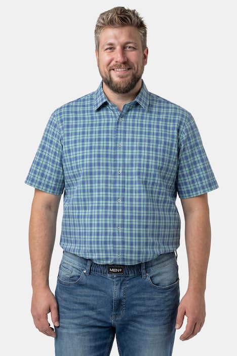 Boston Park Leinenoptik-Karohemd, Halbarm. Sommerliche Leinenoptik mit Kentkragen. Der bewährte Comfort Fit-Schnitt ist herrlich bequem und lang genug, damit das Hemd nicht aus der Hose rutscht. Außerdem: Für optimalen Komfort machen wir die Hemdenknöpfe ab der Größe 4XL eine Nummer größer. Boston Park - stilvoll in jeder Größe. Unsere neue, komplett überarbeitete Passform wird dich überzeugen.