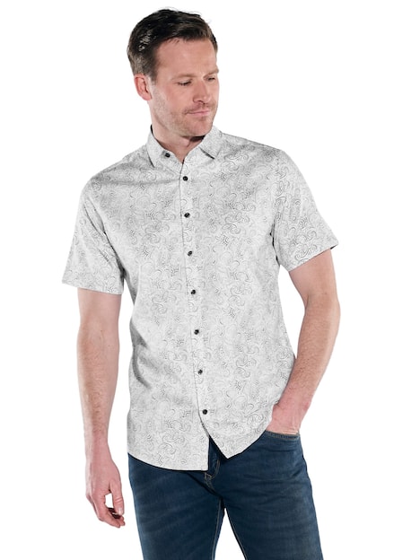 Verleihen Sie Ihrem Look mit diesem eleganten Kurzarmhemd aus Baumwolle einen hochwertigen Komfort mit extra Bewegungsfreiheit dank des Comfort-Stretch-Anteils. Das Hemd beeindruckt mit einer raffinierten All Over Druckmusterung in Paisley-Optik, die jedem Outfit eine stilvolle Note verleiht. Einzigartige Knöpfe setzen Akzente und geben dem Hemd das gewisse "Etwas". Vielseitig kombinierbar, passt es perfekt zu Ihrem individuellen Stil, ob klassisch mit einer dunklen Jeans oder leger mit hellen Chinos. Ideal für jeden Anlass!