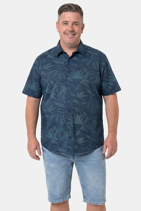 Men+ Hemd, Halbarm, mit floralem Muster und Kentkragen. Der bewährte Comfort Fit-Schnitt ist herrlich bequem geschnitten und so lang, dass das Hemd nicht aus der Hose rutscht. Für optimalen Komfort machen wir die Hemdenknöpfe ab der Größe 4XL eine Nummer größer. Men+ - Mode für Männer in jeder Größe. Unsere neue, komplett überarbeitete Passform wird dich überzeugen.