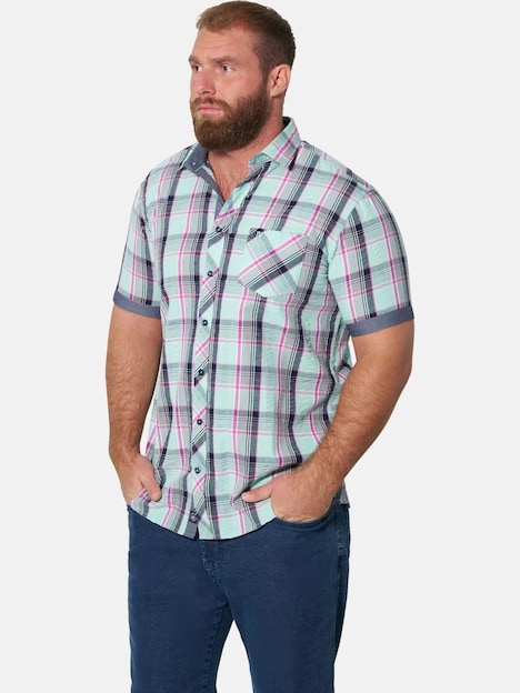 JAN VANDERSTORM ist Ihr Experte für Herrenmode in großen Größen. Das Kurzarmhemd ESKIEL von JAN VANDERSTORM ist ein echtes Highlight für die Sommergarderobe. Mit seinem auffälligen Karomuster zieht es alle Blicke auf sich. Der Kentkragen und die Kontrastbesätze aus Chambray verleihen dem Hemd einen coolen Look, während die Brusttasche für den praktischen Aspekt sorgt. ESKIEL ist ein leichtes Seersucker-Hemd, das Ihnen an warmen Tagen ein angenehmes Tragegefühl bietet! Material 100% Baumwolle. Maschinenwäsche. +FIT KOLLEKTION: Bequemer Style aus unserer +Fit Kollektion. Mit unserem +Komfort Spezialschnitt ist dieses Oberteil vorn länger geschnitten und kann so auch bei ausgeprägtem Bauchumfang in der Hose getragen werden, ohne herauszurutschen.