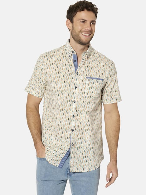 BABISTA begeistert seit 30 Jahren modebewusste Männer mit dem Gespür für Qualität. Das Kurzarmhemd MARVIO von BABISTA ist ein Meisterwerk der legeren Eleganz. Mit seinem feinen Wasserfarben-Musterprint zieht dieses Hemd alle Blicke auf sich. Der Button-Down-Kragen sorgt für einen gepflegten Look, während die aufgesetzte Brusttasche mit der Stickerei und die Chambray-Besätze das Design vervollständigen. Hemd MARVIO ist die perfekte Wahl für den modebewussten Mann, der auch in der Freizeit stilvoll auftreten möchte. Material 100% Baumwolle. Maschinenwäsche.