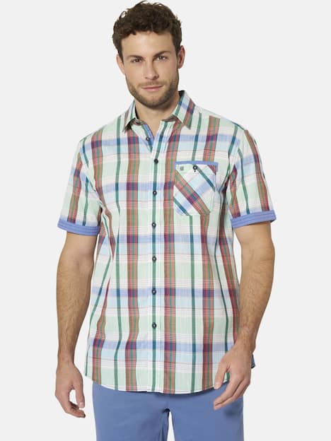 BABISTA begeistert seit 30 Jahren modebewusste Männer mit dem Gespür für Qualität. Das Kurzarmhemd PARZIA von BABISTA bringt Farbfrische in Ihre Garderobe: Mit seinem geschmackvollen Karodesign zieht es alle Blicke auf sich. Der klassische Kentkragen verleiht ihm eine zeitlose Eleganz, während die Brusttasche mit Knopf Funktionalität und Stil vereint. Das Hemd punktet zudem mit kontrastierenden Chambray-Details, die rundum zu finden sind. Hemd PARZIA ist die perfekte Wahl für den modebewussten Mann, der ein einzigartiges und stilvolles Hemd bevorzugt. Material 100% Baumwolle. Maschinenwäsche.