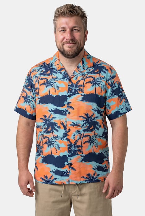 Men+ Hemd, Halbarm, Cuba Kragen, kastiger Fit, Alloverprint, bis 8 XL