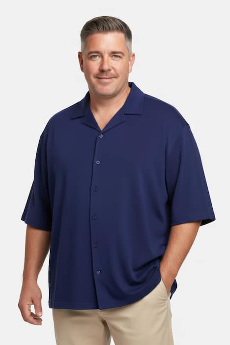 Men+ Jerseyhemd, Halbarm, mit Cubakragen. Kastiger Cuba-Fit - hoher Tragekomfort in der Freizeit und am Strand. Außerdem: Für optimalen Komfort machen wir die Hemdenknöpfe ab der Größe 4XL eine Nummer größer. Men+ - Mode für Männer in jeder Größe. Unsere neue, komplett überarbeitete Passform wird dich überzeugen.
