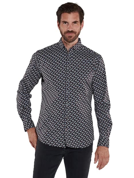 Mit Anziehungskraft! Das maskuline Langarm-Hemd hat einen besonderen Grafik-Print und könnte in Ihrer Umgebung für Aufmerksamkeit sorgen. Es ist ultrabequem und durch das Elastan besonders robsut. Jeans, Gürtel und Sneaker sollten für den stylischen Look farblich monochron gehalten werden.