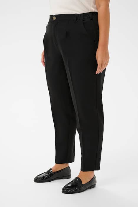 Damenhose mit modernem, schmalem Schnitt, Bundfalten, Knopfverschluss und bequemem Bund. Geeignet für Büro und Freizeit.