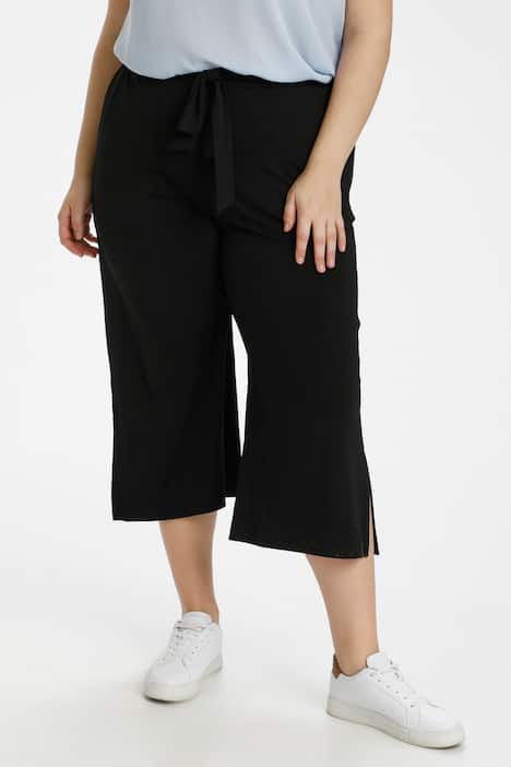 Diese Culotte bietet einen lässigen Schnitt, einen elastischen Bund und eine Zierschleife. Das weite Bein sorgt für Tragekomfort und Bewegungsfreiheit, ideal für Alltags- und Business-Outfits.
