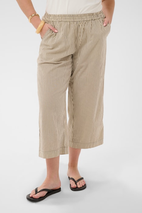 Diese gestreifte Cropped-Hose verbindet angenehmen Tragekomfort mit moderner Passform. Der Gummibund, Seitentaschen und die Knöchellänge bieten Alltagstauglichkeit und Vielseitigkeit.