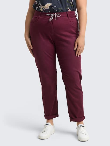 Plus Size - Cropped Slim Hose für Frauen (mit Knopf und Reißverschluss) mit weicher und nachhaltiger Baumwolle, im Five-Pocket-Style, mit Gürtelschlaufen, mit Kordelzug am Bund