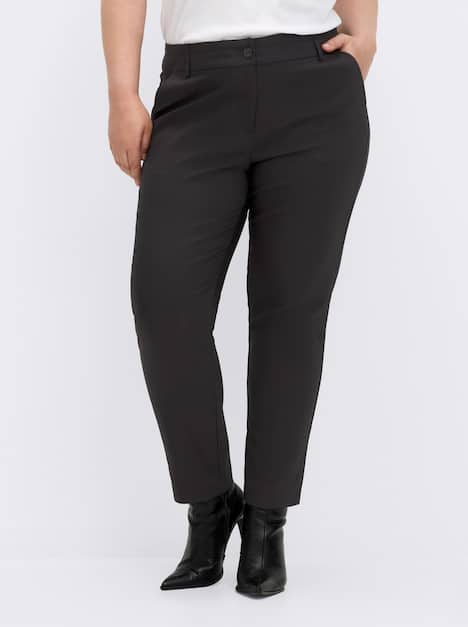 Eine stilvolle Hose für viele Anlässe! Mit Formbund, Knopf- und Reißverschluss, Gürtelschlaufen, zwei seitlichen Taschen vorne und zwei Zier-Paspeltaschen hinten. Mit kleinen Schlitzen an den Beinabschlüssen. Fußweite ca. 34 cm. Ohne Gürtel.