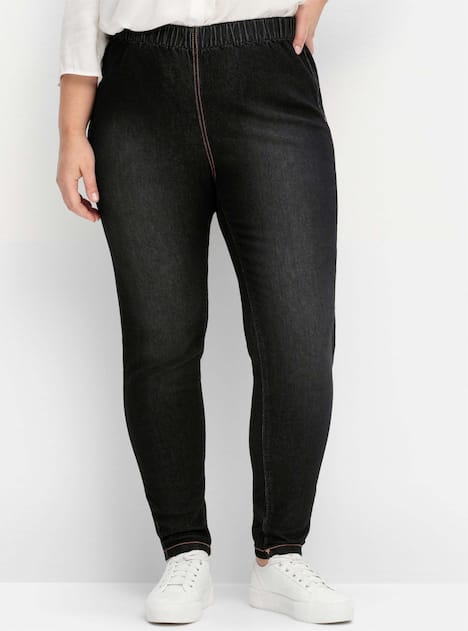 Kontrastnähte und eine individuelle Waschung verleihen den Jeggings die typische Jeansoptik. Ein rundum eingearbeiteter Schlupfgummibund macht sie dazu herrlich bequem.