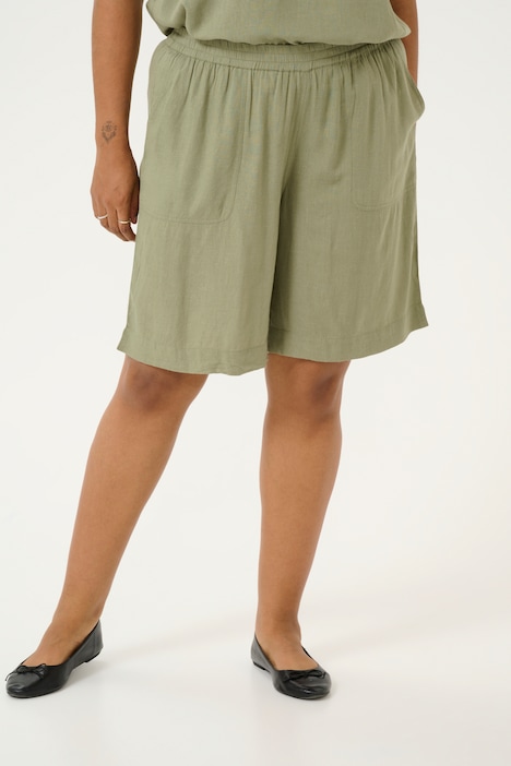 Linen Shorts überzeugen mit lockerer Passform, elastischem Bund, aufgesetzten Taschen und angenehmem Tragegefühl – ideal für den Alltag.