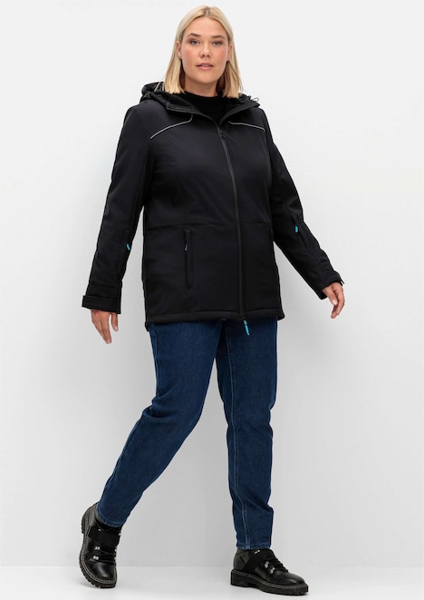 Skijacke aus elastischem Softshell. Die Winterjacke überzeugt mit durchdachten Details wie der verstellbaren Kapuze, dem rutschfesten Schneefang und dem wasserdichten 2-Wege-Reißverschluss mit Kinnschutz und Windschutzblende. In die elastischen Ärmelbündchen sind Daumenlöcher eingearbeitet, die verstellbaren Abschlüsse verhindern das Eindringen von Kälte, Schnee und Wind. Mit Fleece gefütterte Reißverschlusstaschen bieten ausreichend Platz, dazu kommen Skipasstaschen an beiden Armen. Für bessere Sichtbarkeit sorgen die reflektierenden Biesen im Rücken.