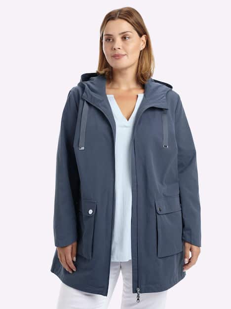 Longjacke in leichter A-Linie. Mit Kapuze und Tunnelzug sowie den beiden großen aufgesetzten Taschen wirkt die Jacke lässig und sportiv. Auch der Gummizugbund am Ärmelsaum unterstreicht den entspannten Look. Weitere praktische Details sind der 2-Wege-Reißverschluss und die Innentasche.