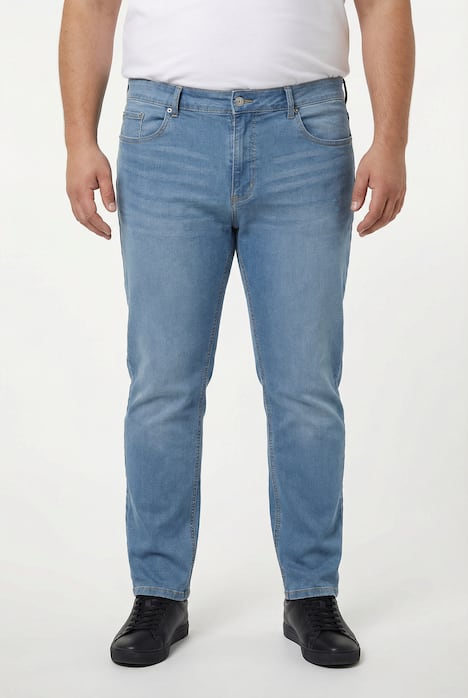 Men+ Jeans, FLEXLASTIC®, aus super-elastischem Light Weight Denim - perfekter 5-Pocket-Look, sommerlich leicht. Jeden Tag, jede Bewegung! Unsere bewährte Straight Fit-Passform wird auch dich überzeugen: Etwas tiefere Leibhöhe, etwas schmalere Oberschenkel- und Beinweite, etwas schmalere Fußweite. Diese 5-Pocket-Jeans ist die moderne Denim-Variante, für alle, die eine schlankere Optik wollen, aber auf Komfort nicht verzichten wollen. FLEXLASTIC® steht für absoluten Tragekomfort durch höchste Bewegungsfreiheit und Flexibilität. Men+ - Mode für Männer in jeder Größe. Unsere neue, komplett überarbeitete Passform wird dich überzeugen.