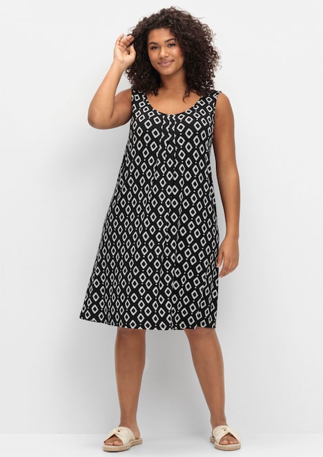 Strandkleid in ärmelloser Form. Die Kellerfalte unterhalb des Ausschnitts verleiht dem Kleid luftige Weite und lässt es herrlich locker fallen. Ein perfekter Urlaubsbegleiter!