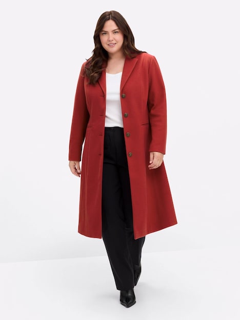 Langer Mantel von sheego by Joe Browns. Mit tailliertem Schnitt, tiefem Reverskragen und gekräuselter, leicht gepolsterter Schulterpartie formt er eine feminine Silhouette. Besondere Details wie die schmückende Kreuz-Ösen-Schnürung im Rücken, Metallknöpfe und Samtstreifen am Ärmelsaum oder das mit Blumen bedruckte Innenfutter verleihen dem klassisch-eleganten Style einen raffinierten Twist. Knopfleiste und Paspeltaschen runden den Look ab.