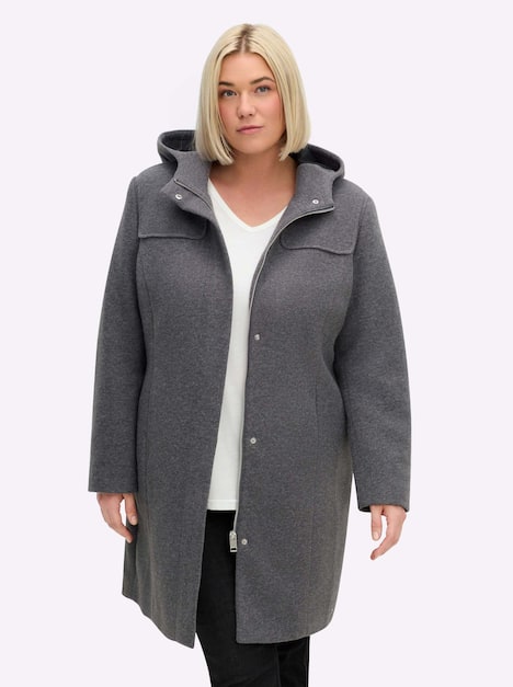 Wintermantel mit aufgesetzter Schulterpasse für stilvolle Optik. Die dezenten Schulterpolster verleihen eine harmonische Silhouette, während der verdeckte Reißverschluss mit Druckknopfleiste für eine klare Linie sorgt. Praktische Details wie der verdeckte Gehschlitz hinten und eine Innentasche machen den Mantel zu einem funktionalen Begleiter für kalte Tage.