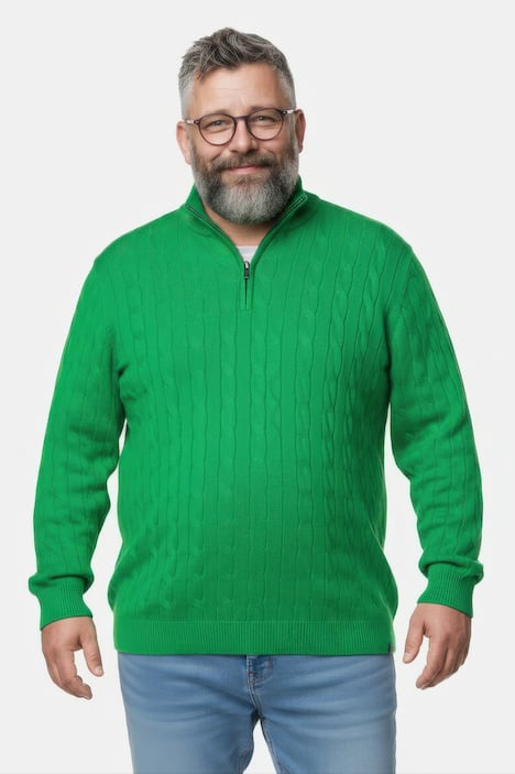 Boston Park Strick-Troyer aus weichem Baumwollmix-Strick mit Zopfmuster. Bequeme, sportive Passform mit Stehkragen und Zipper. Boston Park - stilvoll in jeder Größe. Unsere neue, komplett überarbeitete Passform wird dich überzeugen.