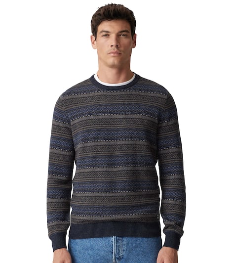 Dieser Rundhalspullover begeistert durch seine modische Optik und seine angenehmen Trageeigenschaften dank dem Wollanteil. Durch seine klassische Farbwahl lässt er sich zu vielen Looks tragen und begeistert dabei mit seinen modischen Norweger-Muster. Ob bequem zu T-Shirt und Jeans oder in Kombination mit einem Hemd - dieser Pullover ist immer eine gute Wahl.