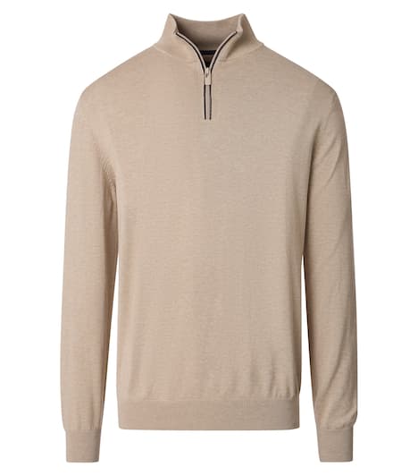 Der CASAMODA Troyer begleitet dich jederzeit stilsicher und komfortabel durch den Alltag. Als Pullover mit Stehkragen aus reiner Baumwolle sorgt er nicht nur für ein angenehmes Hautgefühl, sondern bleibt dabei angenehm dehnbar und weich, da er gestrickt ist. Das klassische Design des Troyers wird durch den farblich abgesetzten Reißverschluss am Stehkragen modern interpretiert, sodass du bei jeder Freizeitaktivität, beim Spaziergang oder auf Reisen immer passend gekleidet bist. Die normale Passform schmeichelt jeder Figur und verspricht maximale Bewegungsfreiheit. Du kannst dieses Modell ganz unkompliziert mit einem T-Shirt, einer Jeans, einer Hose oder einer Jacke kombinieren und so deinen persönlichen Look unterstreichen, ohne dabei auf Komfort und modischen Anspruch verzichten zu müssen.