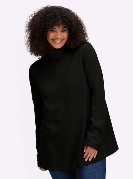 Pullover mit geripptem Rollkragen. Durch die seitlichen Einsätze erhält der Pullover mehr Weite und eine schmeichelnde A-Form.