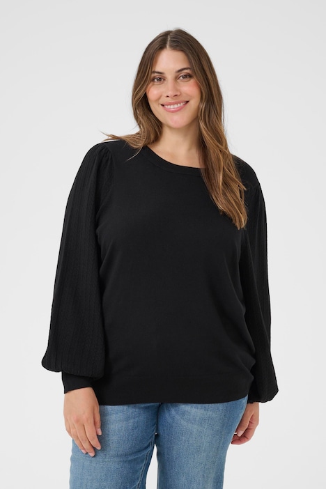 Dieser Damenpullover besticht durch eine lockere Passform, einen runden Halsausschnitt und leicht strukturierte Ballonärmel. Das vielseitige Strickdesign sorgt für einen angenehmen Tragekomfort.