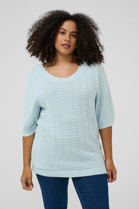 Dieser Strickpullover für Damen bietet reguläre Passform, markante Struktur, Rundhalsausschnitt und halbe Ärmel. Bequem im Alltag und einfach zu kombinieren.
