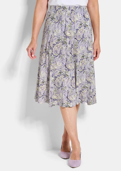 Rock in weit schwingenden Bahnen, der in wadenbedeckender Länge Ihre Beine wunderschön umspielt. Mit Rundumschlupfbund und aus hautsympathischem, ungefüttertem Viskose-Jersey für optimalen Tragekomfort. Das aparte Paisley-Dessin lässt sich ganz wunderbar kombinieren.