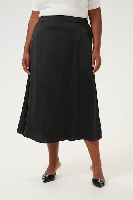 Dieser Midi-Rock punktet mit figurschmeichelnder A-Linie und elastischem Bund. Die elegante Länge und das glatte Design sind ideal für viele Anlässe.