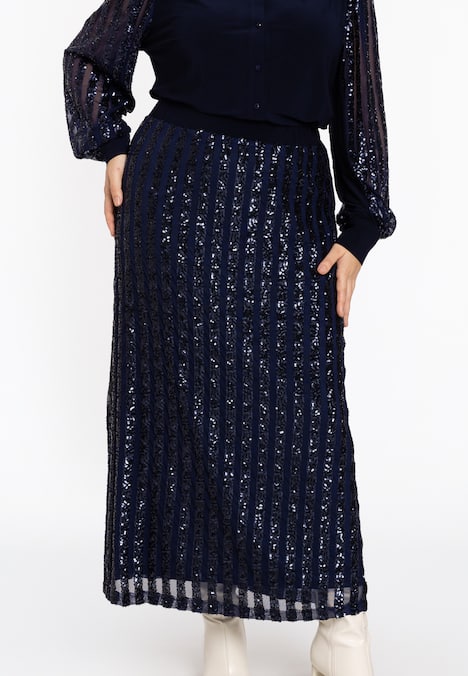 Dieser Maxirock aus der ONDA-Serie ist das perfekte Statement-Stück für festliche Anlässe. Der Rock ist mit glitzernden Pailletten verziert, die ihm einen luxuriösen und eleganten Look verleihen. Die leicht durchscheinende Mesh-Schicht verleiht dem Ganzen einen raffinierten, femininen Touch. Der Rock hat einen bequemen elastischen Bund, sodass er auch an langen Abenden schön sitzt und angenehm zu tragen ist. Dank der geraden Passform fällt der Rock geschmeidig um den Körper, ohne zu eng anzuliegen.