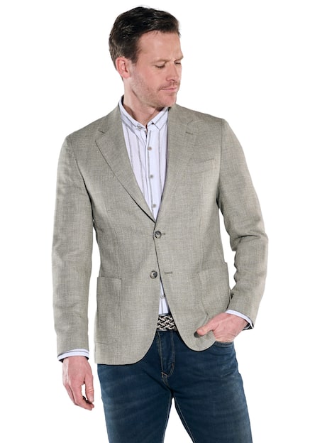 Verleihen Sie Ihrem Outfit mit unserer Jacke einen Hauch von sportiver Eleganz. Die strukturierte Oberfläche und der Anteil an Leinen sorgen für ein angenehmes Tragegefühl. Diese Jacke überzeugt durch ihre wertige Verarbeitung und die praktischen, aufgesetzten Taschen. Sie wurde in europäischer Produktion gefertigt und passt perfekt zu Ihrem Alltagsstil. Kombinieren Sie sie mühelos mit Jeans oder Chinos für einen entspannten Look, der sowohl stilvoll als auch leger ist. Ideal für jede Gelegenheit!