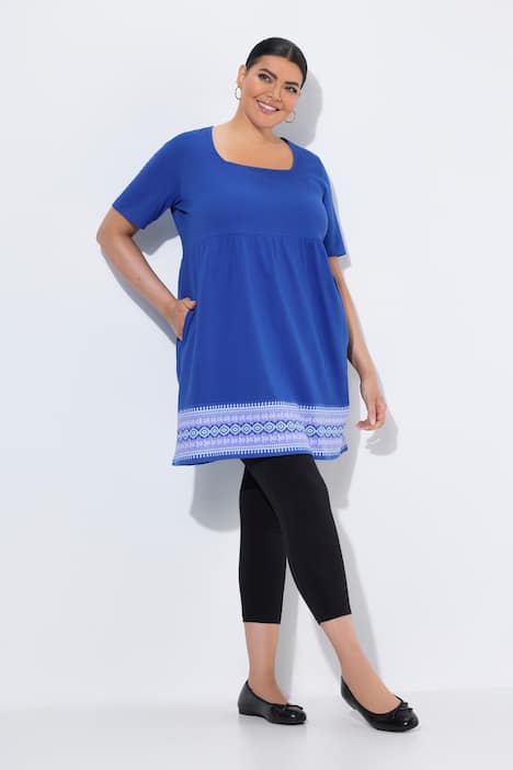 Longshirt, Bordürendruck, Carré-Ausschnitt, Halbarm