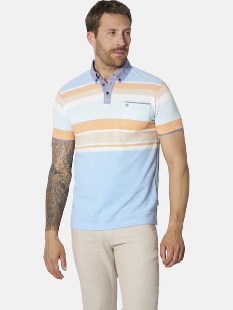 BABISTA begeistert seit 30 Jahren modebewusste Männer mit dem Gespür für Qualität. Das Poloshirt LORIENZA von BABISTA ist ein Meisterwerk des entspannten Stils. Mit seinem lebhaften Streifenmuster und einer aufgesetzten Brusttasche mit besticktem Detail bietet es eine elegante Note. Der gewebte Button-Down-Kragen sorgt für einen modernen Look. Feinste Details in Kontrastfarbe und die kontrastfarbenen Seitennähte machen dieses Shirt zu einem einzigartigen Kleidungsstück. Poloshirt LORIENZA ist eine stilvolle Wahl für jeden Tag. Material 100% Baumwolle. Maschinenwäsche.