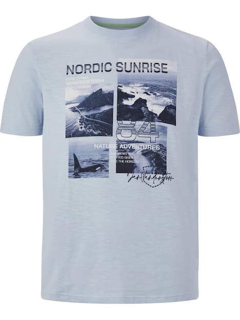 JAN VANDERSTORM ist Ihr Experte für Herrenmode in großen Größen. Entdecken Sie das T-Shirt INGTON von JAN VANDERSTORM, das echte nordische Lässigkeit versprüht und jede Menge Charakter mitbringt! Der markante Fotoaufdruck, stilvoll in Quadratform platziert, zieht garantiert Blicke an. Der bequeme runde Halsausschnitt und die kleinen Schlitze an den Seiten sorgen für entspannten Tragekomfort. Das optische Highlight ist die dynamische Oberflächenstruktur, die dem Shirt einen lebendigen Look verleiht. Kombiniert mit Ihrer Lieblingsjeans, ist das T-Shirt INGTON ein kerniger Begleiter für alle Freizeitaktivitäten.