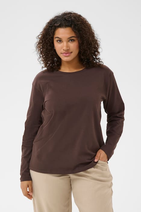 Dieses Langarmshirt hat eine gerade Passform und einen klassischen Rundhalsausschnitt. Das Design ist schlicht gehalten ohne sichtbare Verzierung. Der Saum ist leicht abgerundet, die langen Ärmel haben einen normalen Schnitt.