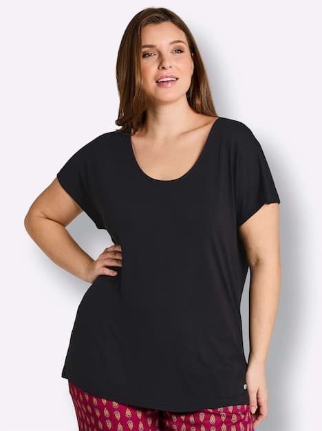 Shirt mit Spitze. Der sommerlich-entspannte Look überrascht im Rücken mit einem V-förmigen Einsatz aus gehäkelter Spitze. Locker fallende Flügelärmel und seitliche Schlitze in Saum ergänzen den komfortablen Style.