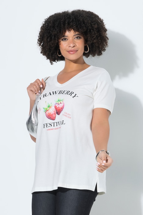 T-Shirt, Comfort Fit, Erdbeeren-Motiv, Halbarm