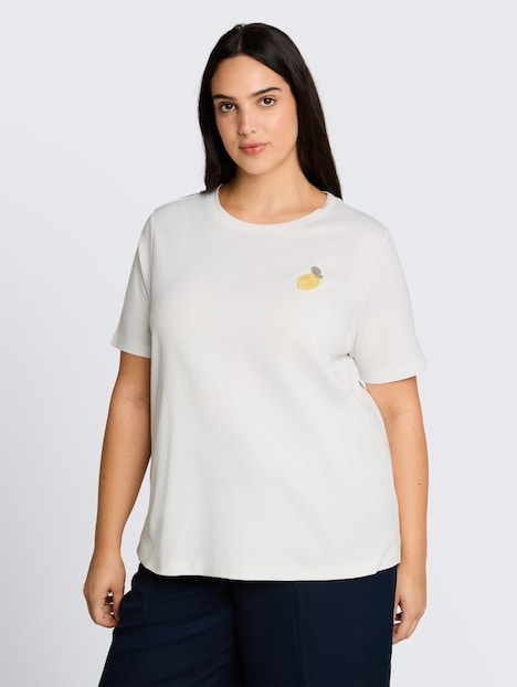 T-Shirt aus Baumwolle mit Häkelapplikation auf der Brust