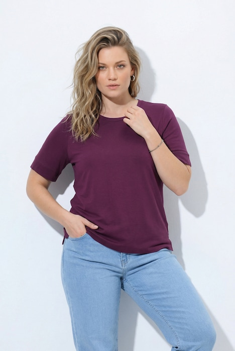 T-Shirt, Rippjersey, Rundhals, Halbarm, Biobaumwolle